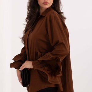Elegancka damska koszula o klasycznym kroju to wyjątkowe połączenie szyku i komfortu. Wykonana z wysokiej jakości bawełny, zapewnia przewiewność oraz wygodę noszenia przez cały dzień. Model ma dłuższy tył, co nadaje mu nowoczesny, lekko wydłużony fason i znakomicie podkreśla sylwetkę. Gładki, ponadczasowy wzór sprawia, że koszula doskonale pasuje na wiele okazji, do codziennych stylizacji, do pracy, na spotkania wizytowe czy wieczorne wyjścia. Długi rękaw wykończony subtelnymi falbankami dodaje całości delikatnej, kobiecej elegancji. Klasyczny kołnierzyk oraz zapięcie na guziki podkreślają formalny charakter koszuli, czyniąc ją idealnym wyborem zarówno do eleganckiej marynarki, jak i samodzielnie jako stylowy akcent stroju.