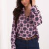 Szara koszula damska w kratę z długim rękawem, zapinana na guziki.