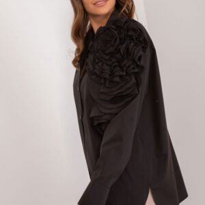 Koszula damska, która w elegancki sposób podkreśla kobiecą stylizację. Wykonana z gładkiego materiału, zapewniającego komfort i swobodę ruchów. Jej klasyczny fason, zapinany na guziki, sprawia, że nadaje się idealnie na wiele okazji, zwłaszcza te bardziej formalne. Na przodzie, na wysokości lewego ramienia, znajduje się duży, ozdobny materiałowy kwiat, który dodaje koszuli wyjątkowego uroku i subtelności. Długi rękaw podkreśla elegancję i klasykę koszuli, idealnie pasując do wielu różnych stylizacji. Głównym materiałem używanym do produkcji koszuli jest wysokiej jakości bawełna, co zapewnia naturalne oddychanie skóry i komfort noszenia przez cały dzień. Ta koszula to doskonały wybór dla kobiet ceniących sobie elegancję i indywidualny styl w każdej sytuacji.