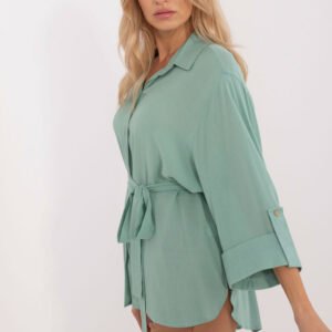 Casualowa damska koszula, idealna na co dzień oraz do pracy. Wykonana z gładkiego, jednokolorowego materiału, którego dominującym składnikiem jest bawełna, zapewnia komfort i przewiewność. Posiada klasyczny kołnierzyk oraz rękawy o długości 3/4, co dodaje jej swobodnego, ale jednocześnie stylowego charakteru. Koszula o standardowej długości, zapinana na guziki, dodatkowo wyposażona jest w pasek do wiązania, który podkreśla talię i dodaje kobiecego akcentu. To uniwersalna propozycja, idealna do casualowych stylizacji, łącząca wygodę z klasycznym stylem.