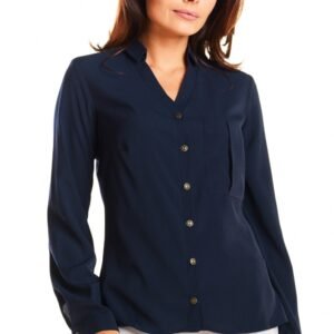 Klasyczna koszula damska zapinana na guziki, z kołnierzykiem. Na przodzie kieszonka. Idealna propozycja do biura.