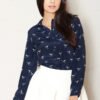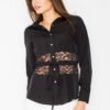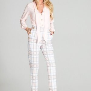 Różowa krótka wiosenna koszula z długim rękawem, z mankietem zapinanym na guzik. Dekolt w serek z ozdobną szarfą do wiązania, zapinana z przodu na guziki.