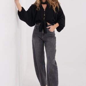 Elegancka koszula klasyczna to uniwersalny element garderoby, który doskonale sprawdzi się zarówno na okazje wizytowe, do pracy, jak i w codziennych stylizacjach. Gładki wzór nadaje jej ponadczasowego charakteru i pozwala na łatwe łączenie z innymi elementami garderoby. Model o krótszej długości, z długim rękawem wykończonym efektownym, bufiastym krojem, który dodaje całości subtelnej elegancji i nowoczesnego wyrazu. Klasyczny kołnierzyk podkreśla formalny charakter koszuli, a zapięcie na guziki zapewnia wygodę i estetyczne dopasowanie. Koszula została wykonana z wysokiej jakości mieszanki wiskozy, elastanu oraz poliestru, co gwarantuje komfort noszenia, lekkość oraz delikatną elastyczność materiału. Dodatkowym atutem jest wiązanie u dołu, które pozwala na indywidualne dopasowanie i nadaje stylizacji kobiecego charakteru.