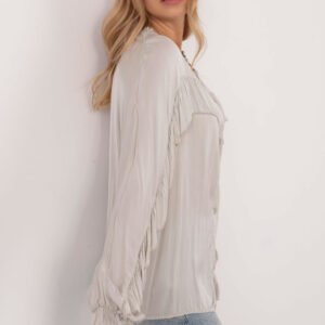 Idealna propozycja dla kobiet ceniących sobie niebanalny styl i komfort. Doskonale sprawdzi się zarówno w codziennych stylizacjach, jak i w bardziej formalnych sytuacjach, np. w pracy. Miękka i delikatna wiskoza zapewnia przyjemne uczucie podczas noszenia. Gładki materiał dodaje elegancji. Klasyczny krój koszuli, który został unowocześniony dzięki oryginalnym detalom. Długie rękawy zakończone efektowną falbaną dodają romantycznego charakteru. Zmysłowy dekolt z wiązaniem pozwala na indywidualną regulację. Praktyczne guziki umożliwiają łatwe zakładanie i zdejmowanie bluzki. Falbana na przodzie oraz na rękawach dodaje lekkości i ruchu.