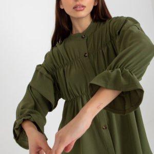 Koszula damska o luźnym kroju zapinana na guziki. Koszula z długim rękawem z ozdobnymi falbankami.