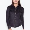 Zamszowa koszula z długim rękawem, zapinana na metalowe napy. Model o klasycznym fasonie, idealnie pasuje do obcisłych spodni.