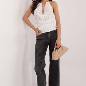 Elegancki top koronkowy z odkrytymi plecami to wyjątkowa propozycja dla kobiet, które lubią podkreślać swój styl w subtelnie zmysłowy sposób. Wykonany z wysokiej jakości wiskozy z dodatkiem elastanu, zachwyca przyjemną w dotyku, delikatnie elastyczną tkaniną oraz urozmaiconą fakturą materiału, która nadaje mu szlachetnego charakteru. Model posiada standardową długość oraz brak rękawów, dzięki czemu prezentuje się lekko i nowocześnie. Z przodu uwagę przyciąga lejący dekolt, elegancko układający się na sylwetce. Tył zachwyca efektownym wycięciem, plecy pozostają odkryte, a cały top jest mocowany na szyi za pomocą metalowej obręczy, która stanowi oryginalną i stylową ozdobę. Top wyposażono w podszewkę, zapewniającą komfort i odpowiednie ułożenie materiału podczas noszenia. To idealny wybór na wyjątkowe okazje, wieczorne wyjścia czy eleganckie stylizacje, w których liczy się połączenie klasy, kobiecości i nowoczesnego wyrazu.