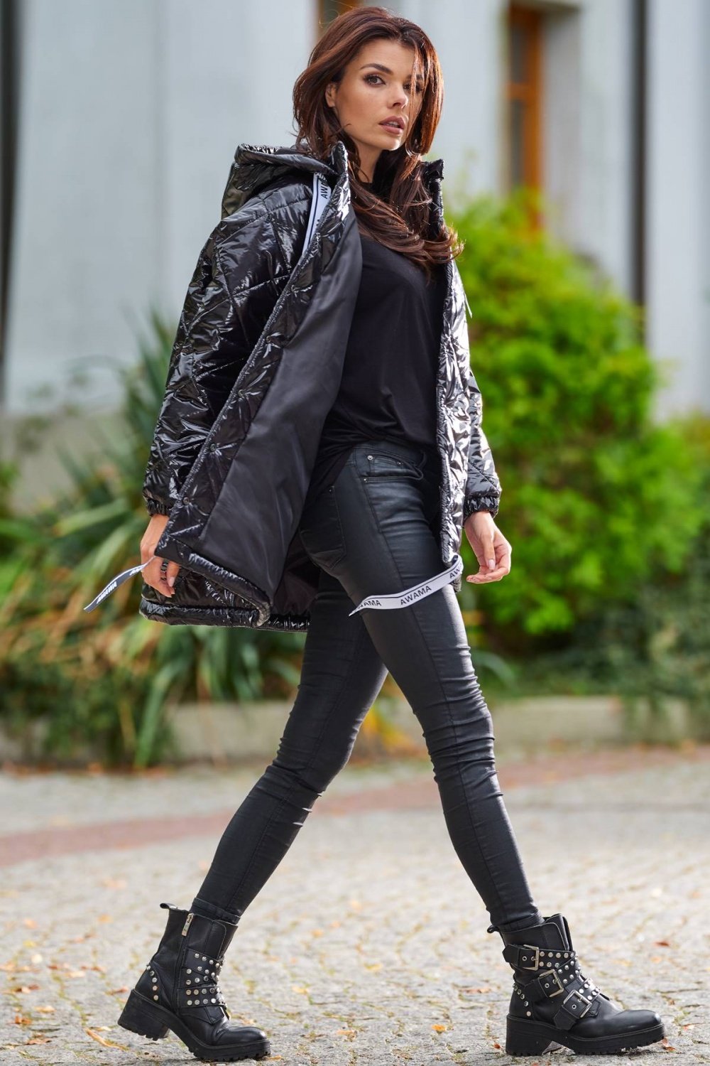 Pikowana kurtka o oversizowym kroju to hit tego sezonu. Jest zapinana na napy na całej długości, ma dużym kaptur oraz praktyczne kieszenie z przodu. Przy kapturze i na dole kurtki znajduje się ozdobna taśma z logo firmy, która regulująca szerokość. Oversizowy fason sprawia, że pasuje do wielu stylizacji. Dostępna w 4 kolorach: beżowym, czarnym, zielonym i czerwonym. Materiał: Podszewka 100% poliester.