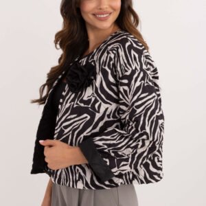 Damska kurtka przejściowa w stylu casual, idealna na sezony jesienne, zimowe i wiosenne. Pikowana, z jednokolorową podszewką, zapewnia lekkość i komfort bez ocieplenia. Wykonana z trwałego poliestru, doskonale sprawdzi się w chłodniejsze dni. Wzbogacona o subtelny motyw zwierzęcy oraz ozdobny czarny kwiat na wysokości piersi, co dodaje jej oryginalności i stylu. Kurtka ma krótką długość oraz długi rękaw, a brak zapięcia nadaje jej nowoczesnego, swobodnego charakteru. Idealna do codziennych stylizacji na co dzień lub do pracy.