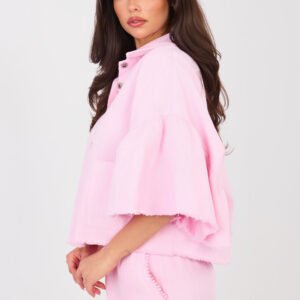 Stylowa damska kurtka jeansowa w casualowym wydaniu, idealna na wiosnę i lato. Wykonana z wysokiej jakości bawełny, zapewnia komfort noszenia na co dzień. Krótki fason pięknie podkreśla sylwetkę, a dół oraz rękawy wykończone modnym wystrzępieniem dodają całości lekkości i charakteru. Model zapinany jest na guziki, z przodu posiada praktyczne naszyte kieszenie. Rękawy 3/4 z falbaną wprowadzają subtelny, kobiecy akcent, który świetnie przełamuje klasyczny jeansowy styl. Kurtka jest bez ocieplenia, dzięki czemu doskonale sprawdzi się w cieplejsze dni. To uniwersalna propozycja do codziennych stylizacji, idealna zarówno do sukienek, jak i jeansów czy spódnic.