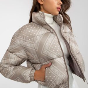 Pikowana puchowa krótka kurtka damska zapinana na zamek. Kurtka w całości na podszewce, bez kaptura oraz kieszeniami wsuwanymi.