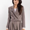 Klasyka z nowoczesnym akcentem, ta marynarka to doskonały wybór na wiele okazji. Taliowany fason podkreśla sylwetkę, a patki z kieszeniami dodają jej funkcjonalności. Zapięcie na jeden guzik nadaje elegancki wygląd, idealny do formalnych i codziennych stylizacji. Świetnie komponuje się ze spodniami w tym samym kolorze, tworząc stylowy garnitur. Znajdziesz w naszym sklepie spodnie w tym samym kolorze. Zestaw je razem z marynarką, a stworzą elegancki damski garnitur, który założysz na wiele okazji: do pracy, do biura, na uroczystość rodzinną, na eleganckie spotkanie.
