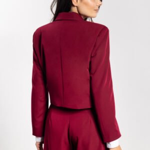 Stylowa marynarka o luźnym kroju łączy klasykę z nowoczesnym charakterem. Krótszy fason nadaje lekkości, a dwurzędowe zapięcie na guziki podkreśla elegancję. Klasyczne klapy i prosta linia ramion sprawiają, że marynarka prezentuje się profesjonalnie i szykownie, jednocześnie zapewniając komfort noszenia. Doskonale komponuje się zarówno z szerokimi spodniami, jak i spódnicą czy sukienką, tworząc uniwersalny i efektowny look na różne okazje.