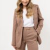Stylowa marynarka o luźnym kroju łączy klasykę z nowoczesnym charakterem. Krótszy fason nadaje lekkości, a dwurzędowe zapięcie na guziki podkreśla elegancję. Klasyczne klapy i prosta linia ramion sprawiają, że marynarka prezentuje się profesjonalnie i szykownie, jednocześnie zapewniając komfort noszenia. Doskonale komponuje się zarówno z szerokimi spodniami, jak i spódnicą czy sukienką, tworząc uniwersalny i efektowny look na różne okazje.