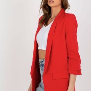 Marynarka damska z rękawem 3/4, bez zapięcia. Marynarka na podszewce, z imitacją kieszeni. Na ramionach wszyte poduszki. Idealna propozycja na wiele okazji.