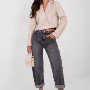 Stylowa marynarka damska wykonana z wysokiej jakości eko skóry na bazie wiskozy i poliuretanu, idealna do codziennych stylizacji oraz do pracy. Casualowy charakter modelu sprawia, że doskonale łączy elegancję z nowoczesnym, miejskim stylem. Gładki materiał podkreśla uniwersalność marynarki i nadaje jej ponadczasowego wyglądu. Model o krótkiej długości, z długim rękawem oraz wykładanymi klapami, zapinany na guziki w dwurzędowym układzie. Wszyte poduszki na ramionach subtelnie podkreślają linię barków i nadają sylwetce wyrazistej formy. Marynarka posiada podszewkę, co zwiększa komfort noszenia. Brak ocieplenia i wypełnienia sprawia, że jest to idealny wybór na sezon jesień, zimę oraz wiosnę zarówno do biura, jak i na co dzień.