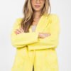 Elegancka damska marynarka o standardowej długości to klasyk, który sprawdzi się zarówno w pracy, jak i na spotkaniach wizytowych czy w codziennych stylizacjach. Model zapinany na guzik został wyposażony w wszyte poduszki na ramionach, dzięki czemu pięknie podkreśla sylwetkę i dodaje jej eleganckiego charakteru. Marynarka posiada długi rękaw, gładką strukturę materiału oraz subtelną ozdobną broszkę na klapie, która stanowi stylowy akcent. Wykonana z wysokiej jakości tkaniny, połączenia poliestru i elastanu, gwarantuje komfort noszenia i odpowiednie dopasowanie. Podszewka wewnętrzna zapewnia estetyczne wykończenie i trwałość fasonu. To ponadczasowa propozycja, idealna do zestawienia z klasycznymi spodniami, spódnicą czy sukienką, tworząc eleganckie stylizacje na różne okazje.