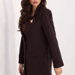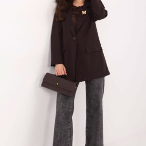 Elegancka damska marynarka o standardowej długości to klasyk, który sprawdzi się zarówno w pracy, jak i na spotkaniach wizytowych czy w codziennych stylizacjach. Model zapinany na guzik został wyposażony w wszyte poduszki na ramionach, dzięki czemu pięknie podkreśla sylwetkę i dodaje jej eleganckiego charakteru. Marynarka posiada długi rękaw, gładką strukturę materiału oraz subtelną ozdobną broszkę na klapie, która stanowi stylowy akcent. Wykonana z wysokiej jakości tkaniny, połączenia poliestru i elastanu, gwarantuje komfort noszenia i odpowiednie dopasowanie. Podszewka wewnętrzna zapewnia estetyczne wykończenie i trwałość fasonu. To ponadczasowa propozycja, idealna do zestawienia z klasycznymi spodniami, spódnicą czy sukienką, tworząc eleganckie stylizacje na różne okazje.