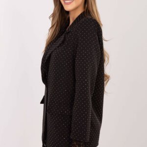Elegancka damska marynarka to doskonały wybór na wizytowe okazje oraz stylowe imprezy, gdzie liczy się szyk i efektowne detale. Jej klasyczna forma z wykładanymi klapami została wzbogacona o ozdobne elementy, które nadają całości wyjątkowego charakteru. Model wykonany jest z połączenia poliestru i elastanu, dzięki czemu materiał delikatnie pracuje, zapewniając wygodę, a jednocześnie prezentuje się elegancko i schludnie. Marynarka posiada również podszewkę, która podnosi komfort noszenia oraz gwarantuje wysoką jakość wykończenia. Na ramionach wszyto poduszki, które subtelnie modelują sylwetkę i podkreślają formalny, wizytowy charakter marynarki. Efektowna aplikacja z dżetami stanowi dominujący akcent ozdobny, dodając blasku i nowoczesności. Marynarka ma standardową długość, a długi rękaw wykończony koronką nadaje całości kobiecego i delikatnego wyrazu. Dolną część marynarki również ozdobiono koronką, co tworzy spójny i elegancki efekt. Przód zapinany jest na jednorzędowe guziki, co podkreśla klasyczny, ale jednocześnie lekki charakter modelu. To stylowa propozycja dla kobiet, które cenią elegancję z nutą wyrazistego, imprezowego blasku idealna na uroczystości, przyjęcia i wieczorne wyjścia.