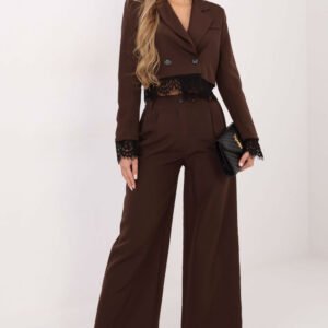 Elegancka damska marynarka to wyjątkowy model stworzony z myślą o wizytowych okazjach, łączący klasyczną formę z efektownymi, kobiecymi zdobieniami. Jej krótka długość oraz dopracowane detale nadają stylizacji szykownego i nowoczesnego charakteru. Wykonana z połączenia poliestru i wiskozy, marynarka prezentuje się elegancko, jest przyjemna w dotyku i doskonale układa się na sylwetce. Wnętrze wykończono podszewką, co podnosi komfort noszenia oraz jakość wykonania. Dodatkowym elementem konstrukcyjnym są wszyte poduszki na ramionach, które subtelnie modelują linię ramion i dodają marynarce bardziej formalnego, wizytowego charakteru. Przód marynarki zdobi dwurzędowe zapięcie na guziki, nadające całości klasycznego, eleganckiego wyrazu. Dolną część marynarki wykończono subtelną koronką, która również pojawia się na długich rękawach, tworząc harmonijne i kobiece dopełnienie całości. To idealna marynarka dla kobiet, które kochają elegancję doskonała na przyjęcia, uroczystości i wszelkie wizytowe okazje.