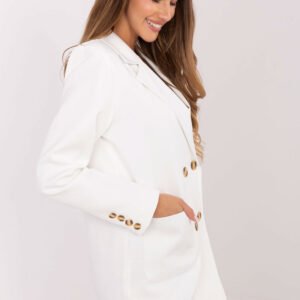 Ta marynarka damska to kwintesencja elegancji i ponadczasowego stylu. Wykonana z wysokiej jakości mieszanki bawełny, elastanu i poliestru, zapewnia komfort noszenia, trwałość oraz doskonałe dopasowanie do sylwetki. Model o standardowej długości i długich rękawach został zaprojektowany z myślą o nowoczesnych kobietach ceniących styl i wygodę. Dwurzędowe zapięcie na guziki nadaje marynarce klasyczny, szykowny charakter, a wszyte poduszki na ramionach delikatnie modelują sylwetkę, podkreślając jej proporcje. Naszyte, wsuwane kieszenie dodają elegancji i funkcjonalności, a podszewka zapewnia idealne ułożenie materiału i wygodę w noszeniu. Gładki wzór sprawia, że marynarka doskonale komponuje się zarówno z eleganckimi spodniami, jak i casualowymi jeansami. Idealna na co dzień, do pracy oraz na spotkania o charakterze wizytowym.