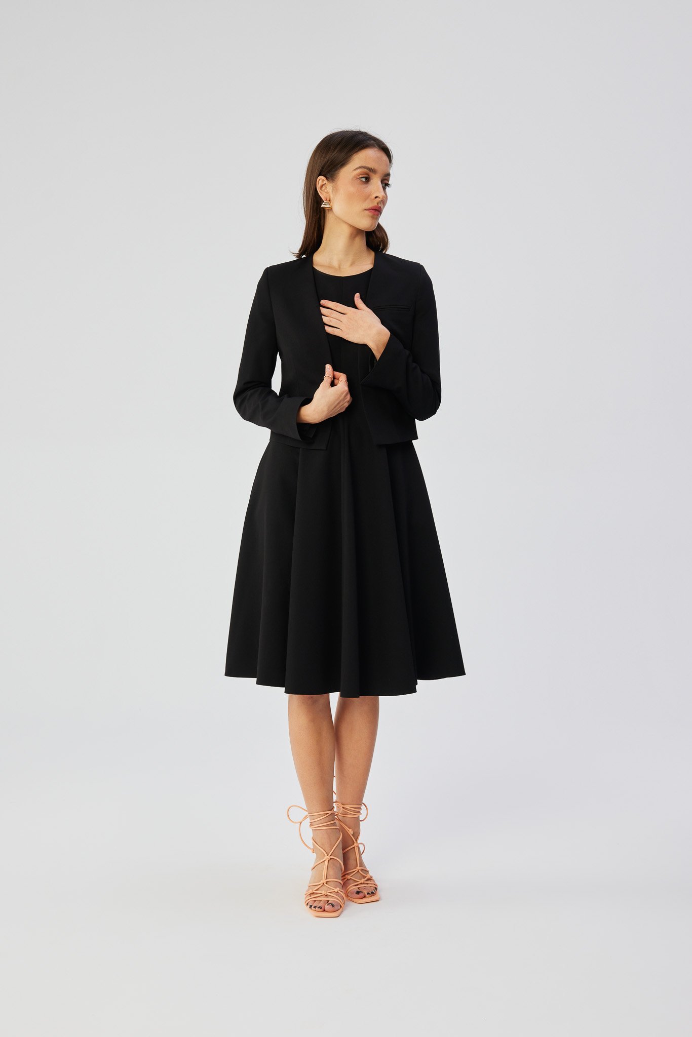 Krótka marynarka to wyjątkowy element garderoby, charakteryzujący się krótkim krojem, co nadaje mu nowoczesny i dynamiczny wygląd. Bez kołnierza oraz z brakiem tradycyjnego zapięcia, ta marynarka prezentuje się stylowo i nieformalnie. Jej długie rękawy dodają elegancji, jednocześnie utrzymując lekki charakter. Z przodu na piersi znajduje się imitacja kieszeni, co nadaje marynarce nutkę swobodnego szyku. Cała marynarka jest starannie wykończona i wyściełana na podszewce, co zapewnia nie tylko estetyczny wygląd, ale także komfort noszenia. To idealny wybór dla tych, którzy poszukują eleganckiego, lecz jednocześnie swobodnego elementu garderoby, idealnego do różnych okazji. Zaprojektowane i uszyte w Polsce.