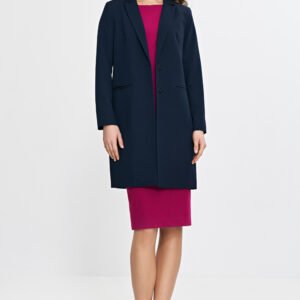 Stylowa marynarka damska o regularnym, luźnym kroju i długości sięgającej przed kolano. Klasyczne wykładane klapy oraz zapięcie na dwa guziki nadają jej elegancki, ponadczasowy charakter. Model z długim rękawem i poduszkami na ramionach, które subtelnie podkreślają sylwetkę. Całość wykończona podszewką, co zapewnia wygodę noszenia i estetyczne wykończenie. Z przodu znajdują się imitacje kieszeni, które dodają marynarce lekkości i minimalistycznego stylu. Idealna do biurowych stylizacji, jak i jako modny dodatek na co dzień.