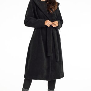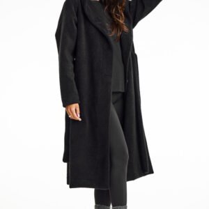 Długi płaszcz z kapturem zapinany na guziki. Odkryj elegancję z płaszczem z kołnierzem szalowym i kapturem od polskiej marki Awama. Idealny na jesień, łączy elegancję z casualowym stylem. Płaszcz ma elegancki kołnierz szalowy i kaptur, dodający nowoczesnego akcentu. Lekki, bez podszewki, przewiązywany w talii, podkreśla kobiecą sylwetkę. Uszyty z dzianiny typu miś, zapewnia ciepło i komfort w chłodniejsze dni. Minimalistyczny design, sprawdzi się zarówno na codziennych wyjściach, jak i formalnych okazjach.