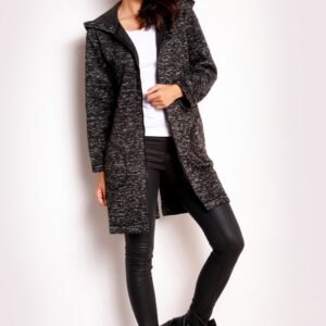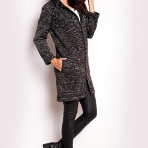 Nietuzinkowy płaszcz wykonany z miękkiej dzianiny z długim rękawem o prostym fasonie. Oryginalny krój sprawia że model pięknie się układa luźno opadając. Szeroki kołnierz, kaptur oraz głębokie kieszenie. Model zapinany na ekspresowy zamek. Niezwykle elegancka propozycja, która doda niebanalności każdej stylizacji.