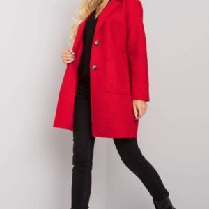 Czerwony płaszcz bouclé zapinany na guziki, kieszenie wsuwane. Idealny na jesień.