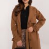 Płaszcz damski z długim rękawem oraz naszytymi kieszeniami wsuwanymi. Płaszcz bez podszewki, zapinany na guzik, z paskiem do wiązania.