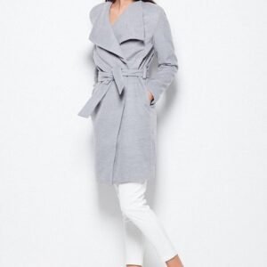 Elegancki płaszcz, przewiązywany w pasie z efektownym, rozłożystym kołnierzem. Model o klasycznym fasonie.