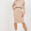 Komplet składający się z bluzy i spódnicy. Bluza z długim rękawem, z nadrukowaną litera na przodzie. Spódnica o ołówkowym kroju, w pasie ściągacz.