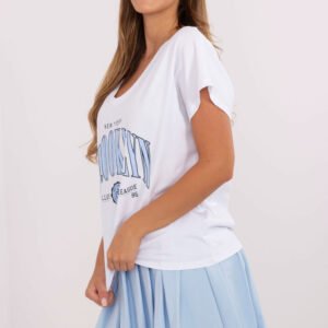 Casualowy komplet damski składający się z t-shirtu i spódnicy plisowanej, idealny na codzienne stylizacje. T-shirt wykonany z miękkiej bawełny z dodatkiem elastanu posiada krótki rękaw, dekolt w serek oraz modny nadruk na przodzie, który dodaje charakteru całej stylizacji. Spódnica mini z wysokim stanem wykonana jest z tego samego komfortowego materiału i posiada wszyte szorty, zapewniające swobodę ruchów. Plisowana konstrukcja nadaje lekkości i kobiecego wdzięku, tworząc zestaw, który łączy wygodę z modnym casualowym stylem.