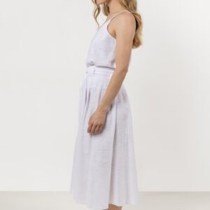 Klasyka i wygoda, ta spódnica to doskonałe połączenie stylu i komfortu. Rozkloszowany krój z zakładkami pięknie układa się w ruchu, a szeroki pas z szlufkami i paskiem podkreśla talię. Wykonana z naturalnej, miękkiej bawełny, zapewnia lekkość i przewiewność, idealnie sprawdzając się na co dzień i na wyjątkowe okazje. Dobierz do spódnicy top lub koszulę z tej samej tkaniny i stworzysz modny letni look.