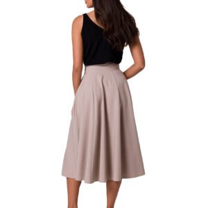 Rozkloszowana spódnica midi z wysoka talią i ozdobnymi guzikami. Spódnica zapinana na kryty zamek.