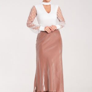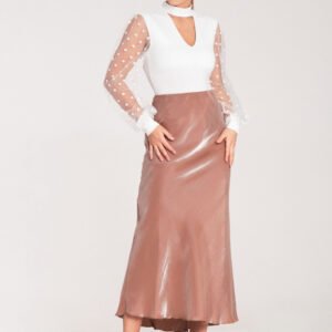Spódnica midi z satynowej tkaniny. W pasie guma.