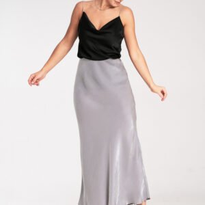 Spódnica midi z satynowej tkaniny. W pasie guma.