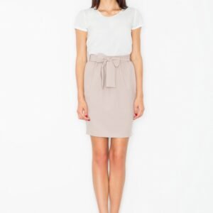 Prosta ołówkowa spódnica bez podszewki. W pasie szarfa do wiązania. Spódnica zapinana na kryty zamek z boku.