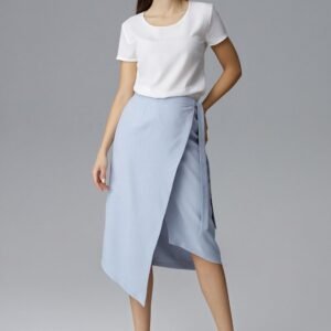 Asymetryczna spódnica, zakładana na lewy bok z wiązaniem w pasie. Idealnie skomponuje się do szpilek, botków czy kozaków.