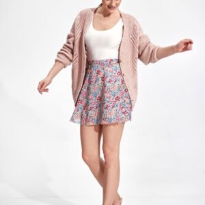Zwiewna, rozkloszowana spódnica mini z podszewką. Spódnica z gumą w pasie, bez kieszeni.