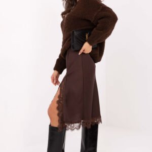 Elegancka spódnica midi o klasycznym, kobiecym kroju, idealna zarówno na co dzień, jak i na bardziej wizytowe okazje. Wykonana z wysokiej jakości tkaniny z dodatkiem elastanu, która delikatnie dopasowuje się do sylwetki, zapewniając komfort noszenia i swobodę ruchów. Model posiada wszytą gumę w pasie, dzięki czemu świetnie leży i nie wymaga zapięcia. Rozcięcie u dołu subtelnie podkreśla nogę, a koronkowe wykończenie nadaje całości elegancji i wyjątkowego charakteru. Spódnica w gładkim wzorze to uniwersalna propozycja, która doskonale sprawdzi się do pracy, na spotkania, jak i na specjalne okazje.