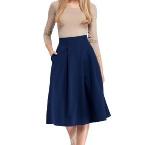 Lekko rozkloszowana spódnica do kolan z modelującymi zakładkami to kobiecy i stylowy element garderoby. Boczne kieszenie dodadzą nieco objętości fasonowi i z pewnością stanowią również o komforcie.