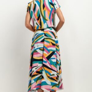 Wzorzysta spódnica z wiskozy T407 to idealny wybór na lato. Wykonana z lekkiej tkaniny, zapewnia niezrównany komfort i przewiewność nawet podczas najgorętszych dni. Długość maxi sprawia, że prezentuje się elegancko i nadaje się zarówno na co dzień, jak i na specjalne okazje. Spódnica zachwyca oryginalnym wzorem, który dodaje charakteru każdej stylizacji. Doskonale sprawdzi się zarówno w połączeniu z prostym topem i sandałami na plażę, jak i zestawiona z elegancką bluzką na wieczorne wyjście. W 100% wykonana z wysokiej jakości wiskozy gwarantuje trwałość oraz łatwość w utrzymaniu czystości. Wiskoza jest naturalnym włóknem pochodzenia roślinnego, które cechuje się miękkością oraz przyjemnością noszenia. Spódnica doskonale układa się na sylwetce, podkreślając kobiece kształty bez zbędnego obciążania ciała. To doskonały wybór dla osób ceniących sobie swobodę ruchów oraz wysoki standard wykonania. Dzięki swojej uniwersalności spódnica z wiskozy stanie się ulubionym elementem Twojej szafy. Możesz ją nosić solo albo zestawiać ze swetrami czy marynarkami, możliwości stylizacyjne są praktycznie nieograniczone! Niezależnie od okazji czy pory roku ta spódnica będzie strzałem w dziesiątkę dla każdej kobiety ceniącej sobie modę oraz wygodę.