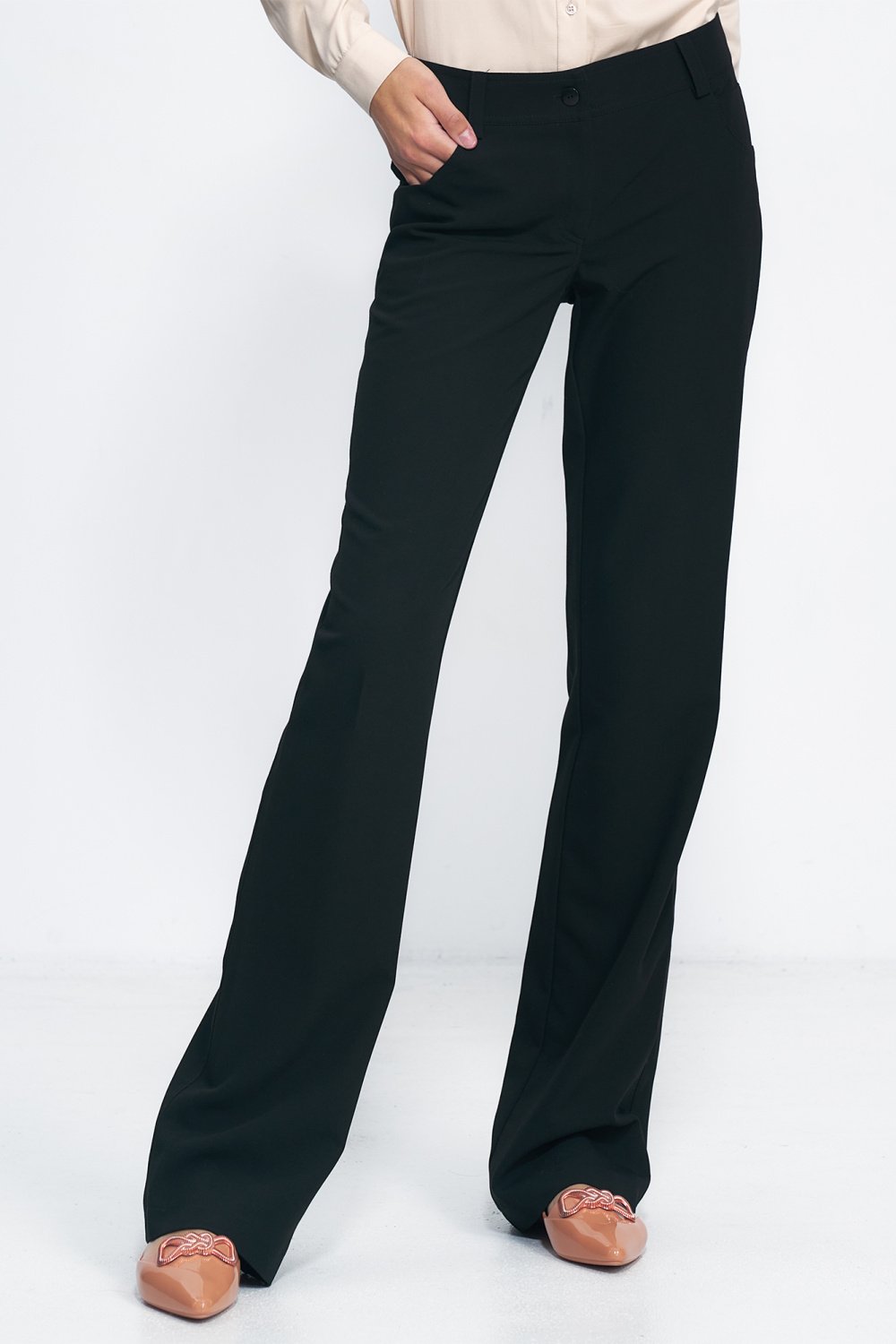 Spodnie bootcut to model który na dobre zagościł w kolekcjach od kilku lat. Będzie królował w trendach jeszcze długo, tylko w różnych zestawieniach. W połączeniu ze szpilką optycznie wysmuklisz i wydłużysz nogi. Zakładając marynarkę w tym samym kolorze stworzysz idealny zestaw typu softoffice. Dobrze też będą wyglądały z luźnym swetrem i płaskim butem. Klasyk na który na pewno znajdziesz miejsce w swojej garderobie!