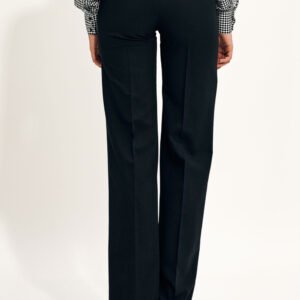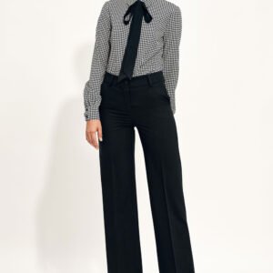 Po wielu sezonach dominacji wąskich spodni, powróciły modele z szerokimi nogawkami, tak zwane wide leg. Spodnie o luźnych nogawkach idealnie wyglądają w zestawie z żakietem w identycznym kolorze, tworząc elegancki total look. Spodnie posiadają podwyższony stan, dzięki czemu wydłużają optycznie sylwetkę.