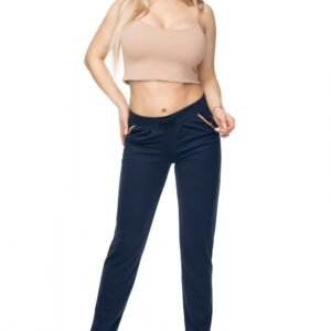 Spodnie o luźnym kroju ze złotą lamówką. W pasie troczek do wiązania, kieszenie wsuwane.