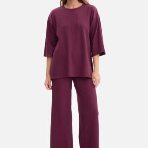 Spodnie damskie uszyte z prążkowanej dzianiny o gramaturze 250 g, która jest miękka, elastyczna i przyjemna w noszeniu. Model bez kieszeni i podszewki, z praktyczną gumką w pasie, zapewniającą komfort i dopasowanie do sylwetki. Fason swobodny, dzianinowy spodnie są dopasowane w talii i biodrach, a dalej układają się luźno, gwarantując wygodę i lekkość. Długie, proste nogawki lekko rozszerzane ku dołowi wysmuklają sylwetkę i dodają całości elegancji. Średni stan sprawia, że spodnie dobrze leżą i podkreślają talię, a pełna długość do ziemi nadaje im nowoczesny, wydłużający nogi efekt. Zaprojektowane i uszyte w Polsce z dzianiny wyprodukowanej w Łodzi, to połączenie wygody, jakości i ponadczasowego stylu.