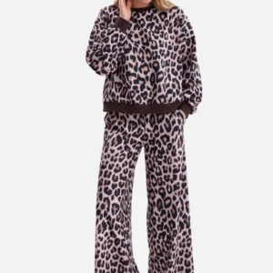 Spodnie damskie wykonane z miękkiej, drapanej dzianiny z nadrukiem, o przyjemnej w dotyku powierzchni z delikatnym włoskiem. Materiał zapewnia komfort i ciepło, a jednocześnie jest lekki i elastyczny. Model bez kieszeni i podszewki, z praktyczną gumką w pasie, która dopasowuje się do sylwetki. Fason luźny, casualowy, spodnie są dopasowane w talii i biodrach, a od uda w dół przechodzą w szerokie, proste nogawki, które swobodnie opadają, tworząc efekt lekkości i wydłużając nogi. Średni stan podkreśla talię i zapewnia wygodę w codziennym noszeniu. Pełna długość, sięgająca do ziemi, sprawia, że spodnie prezentują się elegancko i nowocześnie, a przy tym świetnie komponują się z casualowymi i sportowymi stylizacjami. Zaprojektowane i uszyte w Polsce z dzianiny wyprodukowanej w Łodzi, to gwarancja jakości, wygody i unikatowego stylu.