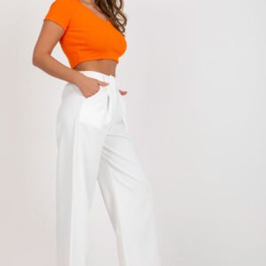 Proste o zarazem eleganckie spodnie z zakładkami, zapinane na guzik i zamek. Spodnie z wysokim stanem, po bokach kieszenie wsuwane.